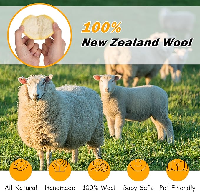 - 𝟏𝟎𝟎% 𝐍𝐄𝐖 𝐙𝐄𝐀𝐋𝐀𝐍𝐃 𝐖𝐎𝐎𝐋 - The 6-piece set of organic dryer balls is meticulously handcrafted from 100% natural New Zealand wool, free from any chemicals or fillers. They guarantee the health and safety of you, your family, and the environment, making them suitable for everyone to use.