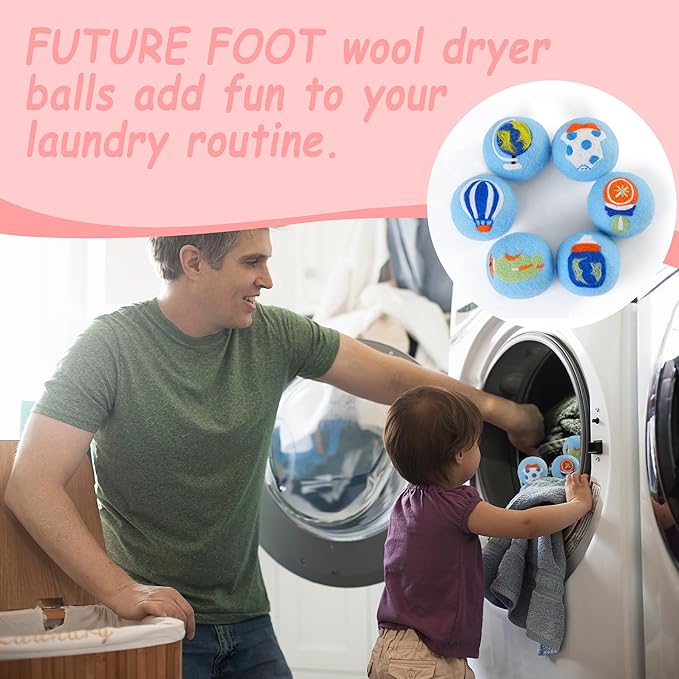 - 𝐓𝐑𝐀𝐕𝐄𝐋 𝐏𝐀𝐓𝐓𝐄𝐑𝐍 - This FUTURE FOOT wool ball combines elements such as hot air balloons, globes, and submarines, as if inviting you to embark on a global journey full of childlike fun and adventure. They are not only great companions for laundry, but can also be used as pet toys or, when mixed with essential oils, transformed into natural air fresheners. Let every laundry be filled with the joy of exploration and bring endless space for imagination.