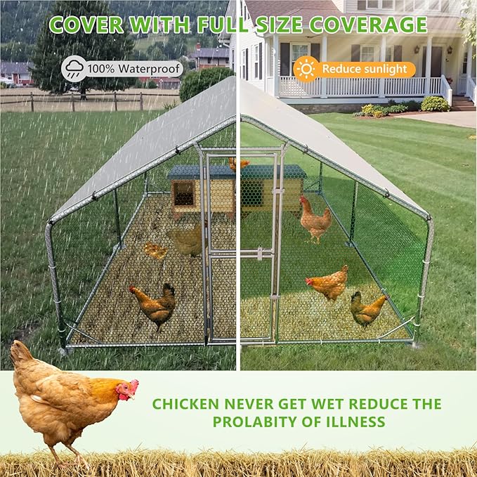 - 【Strong Galvanized Frame & Secure Wire Mesh】Built with heavy-duty galvanized steel, this chicken run offers enhanced durability and rust resistance. The reinforced hexagonal wire mesh helps keep predators out while providing a safe space for your animals.