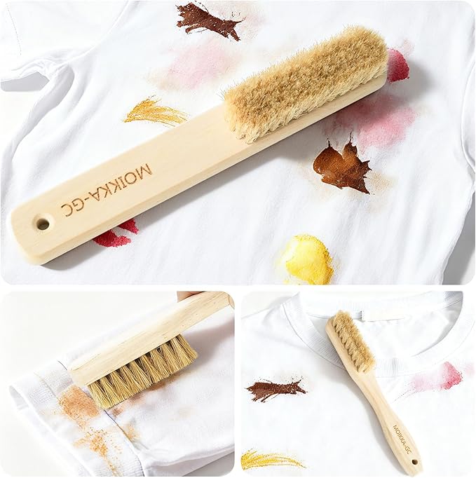 - 【Dual-Size for All Stains】Tackle any stain easily! Our set has a large brush for wide surfaces (clothes, upholstery) and a small precision brush for hard-to-reach spots (collars, cuffs, shoe crevices). Both have ergonomic wooden handles for comfort, removing grease/oil/mud without fabric damage.