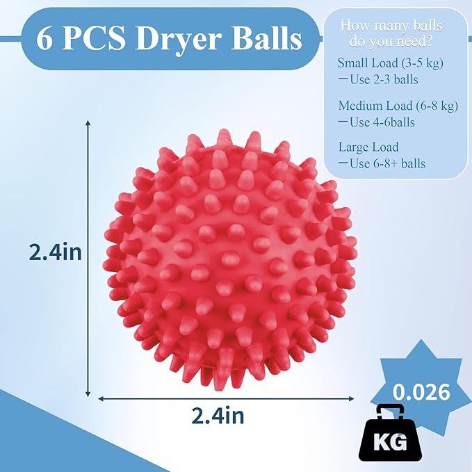 - Multifunctional Use: Package includes 6 dryer balls with a diameter of 2.4 inches to soften clothes, remove hair and lint, and keep fabrics fresh, soft and odor-free