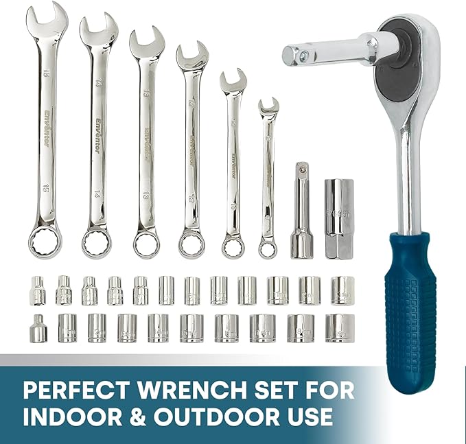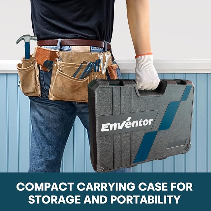 - Home Tool Kit for All-Purpose Use:Enventor 220-piece multi-purpose tool kit includes a professional-grade 24-tooth ratchet set, precision screwdrivers, hex keys, pliers, wrench, claw hammer, tape measure, utility knife, water pump pliers, wire cutters, scissors, hand saw bow, metric sockets (1/4" & 3/8"), wire strippers, and more. Ideal for household maintenance, auto repairs, and mechanical tasks.