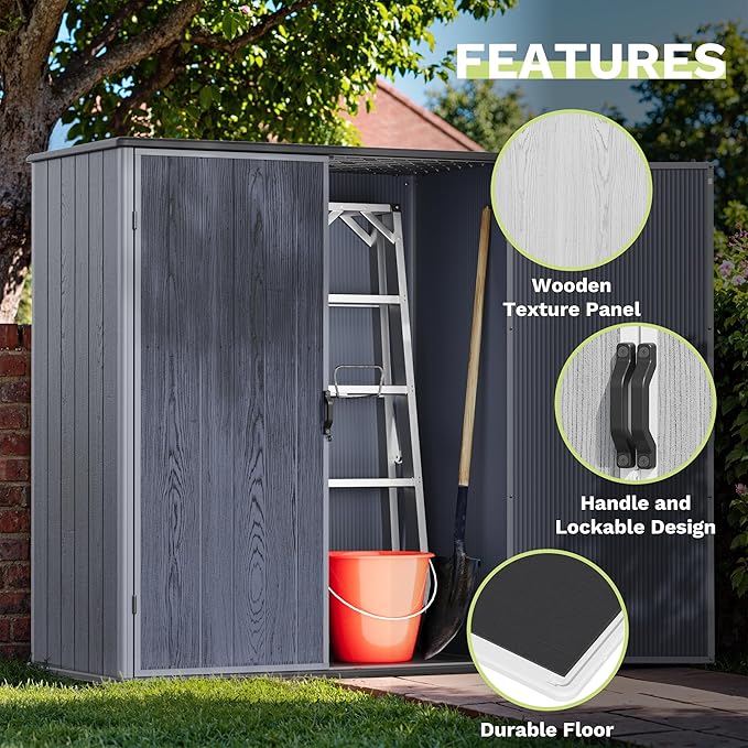 - Heavy-duty Floor - The storage shed features a robust double-layer resin floor, delivering superior protection and ensuring your stored items remain clean and dry. The durable surface is wear-resistant and offers reliable stability for your outdoor accessories.