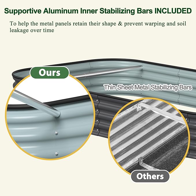 - STABLE AND SAFE – Built with support rods, this galvanized raised garden bed maintains its structure and resists deformation, ensuring long-term outdoor use. For added safety, the raised planter box is equipped with a protective rubber strip around the edges, making it easier to walk around while gardening.