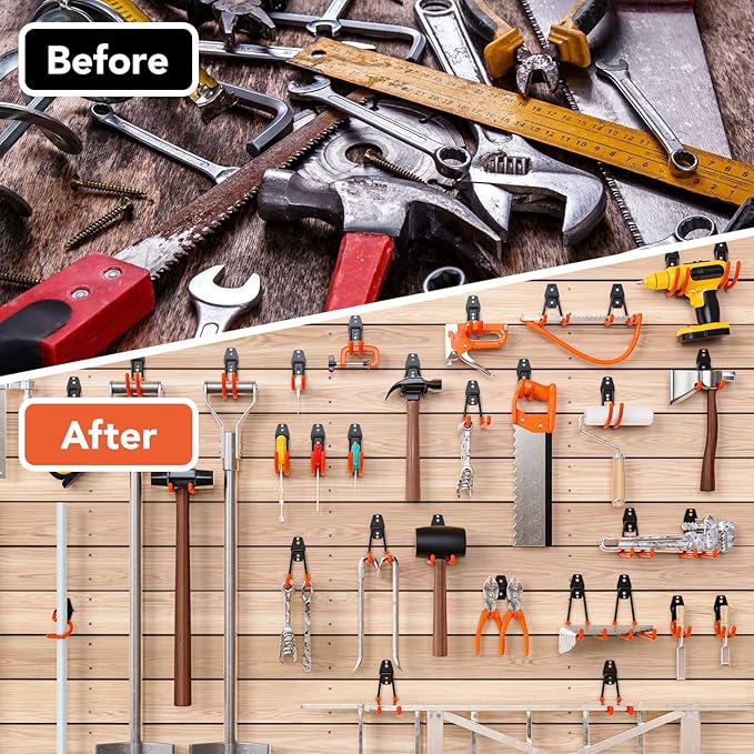 - APPLICATION SCOPE:garage wall organizer can store bulky items such as ladder,power tools,bike,garden tools,or lawn tools,and help recycle garage space from clutter.These wall hooks can also be used shed,gardens,basements,and warehouses