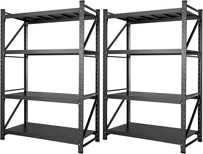 Set of 2 Storage Shelves, 48” Wide Heavy Duty Garage Shelving Units, 4 Tiers Rack Shelf, 24” Deep Steel Industrial Shelving, 3000LBS Adjustable Standing Shelf for Warehouse / Shop 48"W x 24"D x 70"H