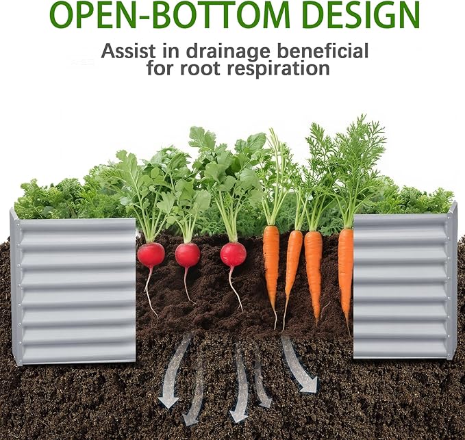 - Large volume: Our large metal raised garden boxes of several specifications have a planting volume of 8ft×4ft×2ft. The box with 24 inches deep is very suitable for planting beans, broccoli and other medium to deep root plants