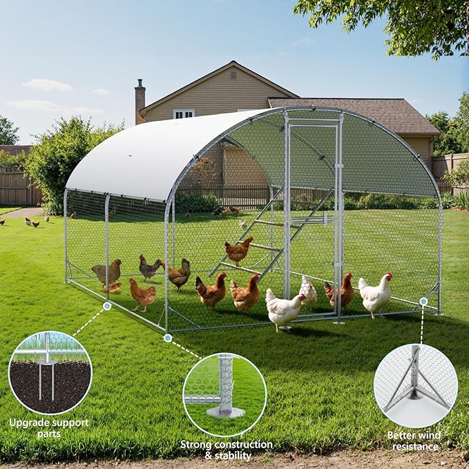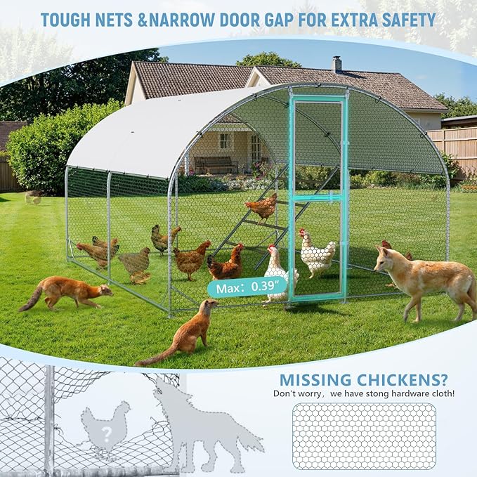 - 【Strong Galvanized Frame & Secure Wire Mesh】Built with heavy-duty galvanized steel for enhanced durability and rust resistance; the reinforced hexagonal wire mesh helps keep predators out while providing a safe space for your animals.