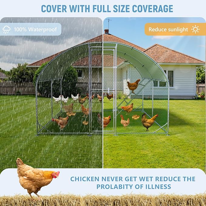 - 【With 2 Top Cover】Equipped with 2 pieces doubled-sided polyethylene UV coated covers to help prevent rain and UVs, keeping your chickens more comfy.
