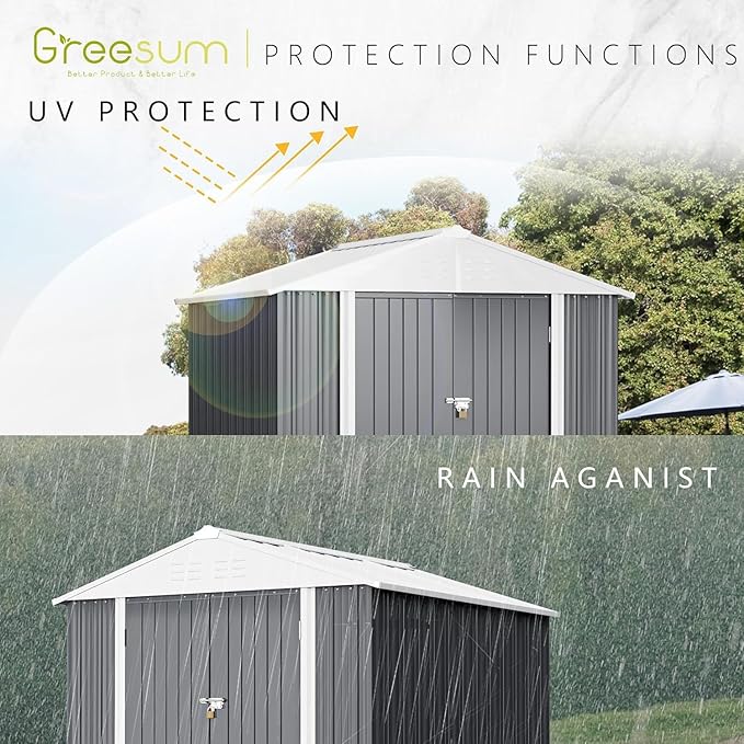 - Durable & Stable Storage Shed: Durable construction and thicker galvanized steel make this durable lifetime shed rust and UV resistant. The overlapping wall panels are water and moisture resistant for worry-free use in all weather conditions.