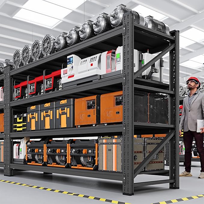- 【HEAVY DUTY FOR REAL】Our super heavy-duty garage shelving featuring one-piece columns that are seamlessly constructed without any joints. This design eliminates weak points and ensures maximum stability, even under the heaviest loads. Each column is wider and thicker than standard models, providing a solid foundation that can handle up to 9000 lbs in total weight. Whether you’re storing heavy machinery, large containers, you can trust our garage shelving to keep your items safe and secure.