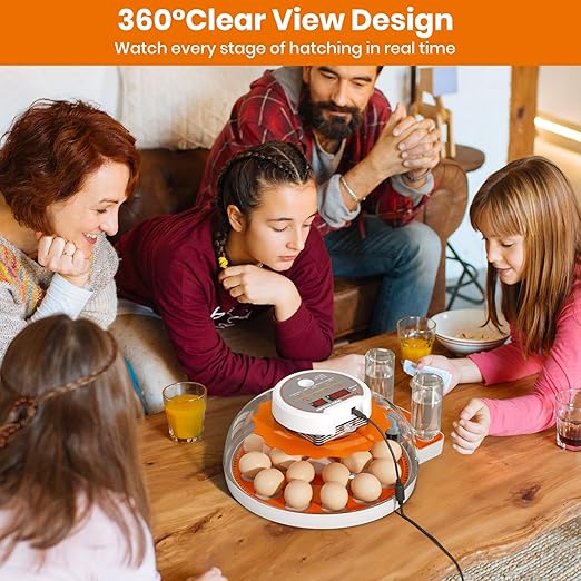 - 【360° Transparent View for Monitoring & Easy to Clean】This egg incubator features a fully transparent 360° design, allowing you to monitor the hatching process without disturbing the eggs. The incubator is easy to disassemble and clean, with a ventilated top cover that opens easily and a removable lower tray that can be washed and reused. Built for convenience and durability, this incubators for hatching eggs helps make the hatching process safer, cleaner, and more efficient.