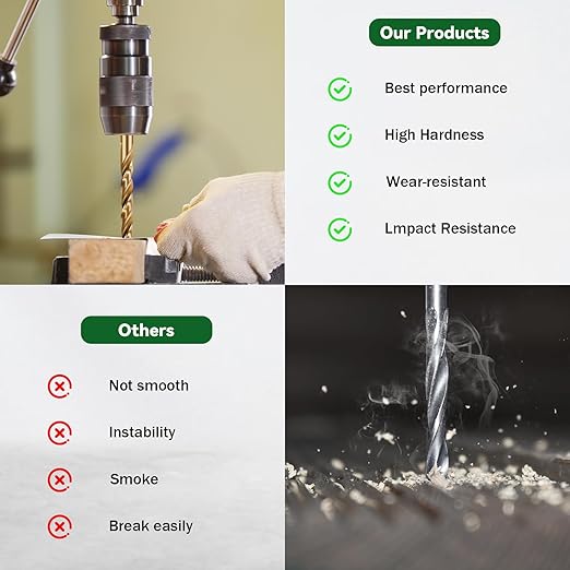 - 【Ultimate Hardness Durability】Our cobalt drill bit set, crafted from M35 high-speed steel with cobalt alloy, offers unmatched hardness and wear resistance. These cobalt drill bits stay sharp longer, even under extreme conditions, making them an excellent metal drill bit set for steel and other hardened materials