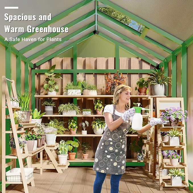 - 【Fast, Easy Assembly】The greenhouse uses a slide-in panel system that makes installation more straightforward and efficient. Panels are designed to glide into the frame, reducing the time and effort needed during setup. Clear, simple steps guide you through the process, so you can get your growing area ready more quickly. Once assembled, the structure offers improved steadiness, creating a dependable space for your daily gardening work and seasonal planting plans