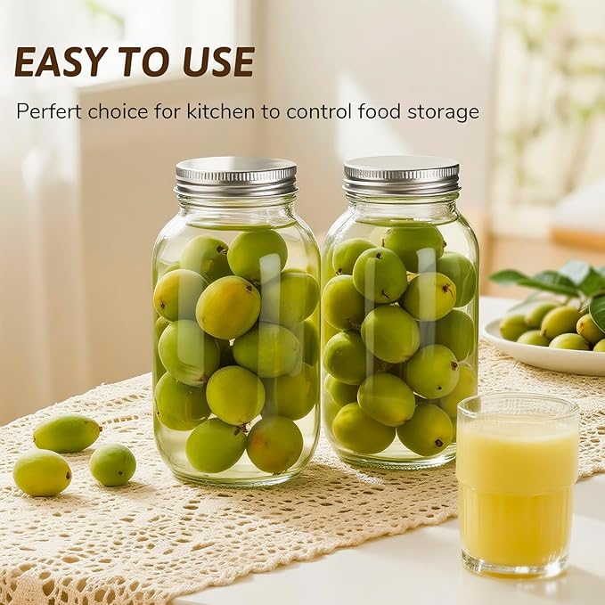 - High quality: 32 oz glass jars are made of thick glass, equipped with food safety glass for long-term use. 2-pack mason jar with lid, suitable for food storage.