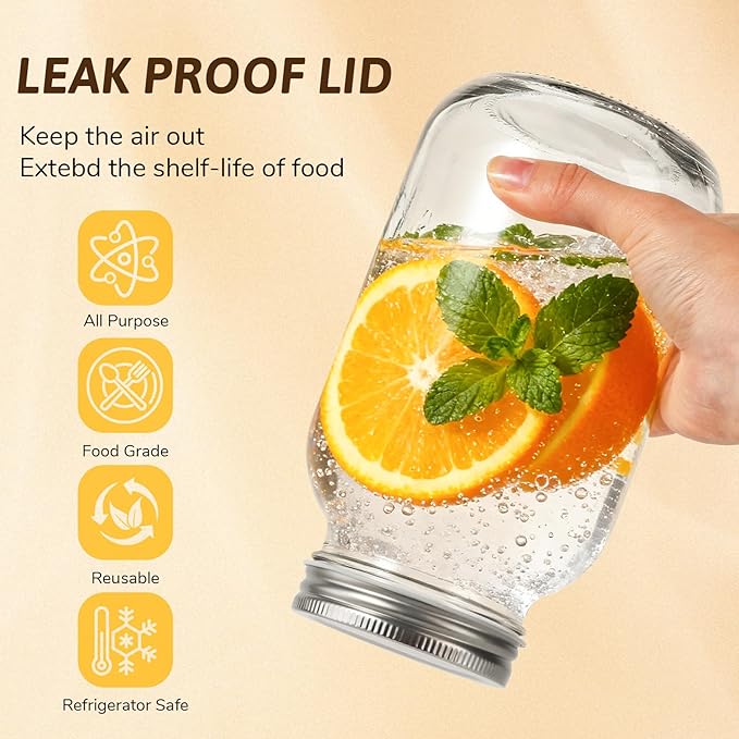 - Multi-purpose: The screw cap mason jar can be used for a variety of different purposes, making it perfect for canning, storage, fermentation, meal preparation, and craft projects. Mason jars can be used to store jams, jellies, candied fruits, homemade kimchi, fruits, beverages, and more. And you can freely draw and decorate mason jars, or give them as unique gifts to your loved ones.