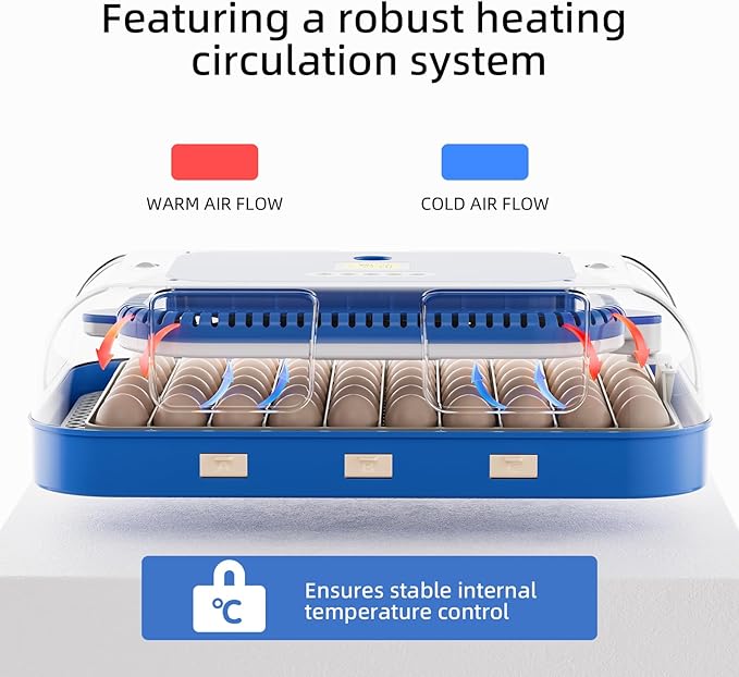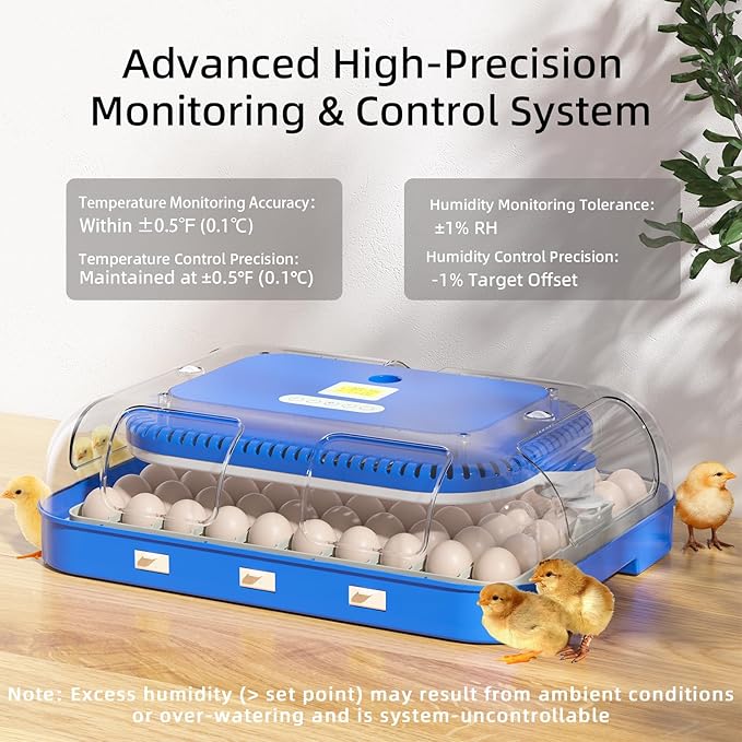 - 【Precision Environmental Control】±0.5℉ (0.1℃) temperature accuracy and ±1% humidity control. Equipped with deviation alarm system (automatic alert for temperature ±2℉/humidity ±10% deviations). Fully automatic egg turning and built-in warm air circulation ensure stable incubation environment, achieving 90%+ hatch success rate