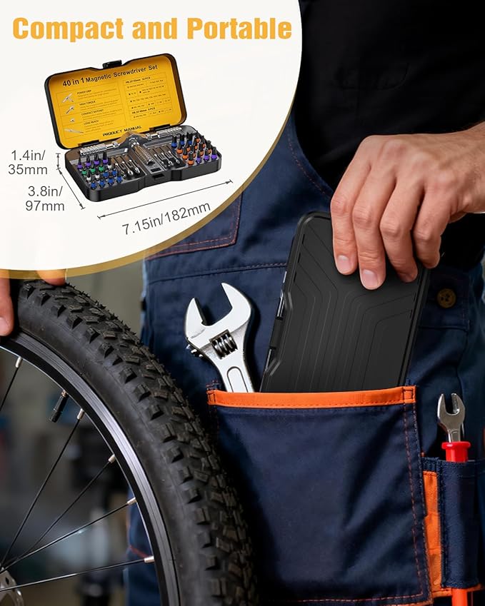 40 in 1 Magnetic Ratchet Screwdriver Set, Multi Bit Ratcheting Screwdriver Set with Detachable Ratchet Handle, Repair Tool Kit for Computer Bicycles Furniture DIY