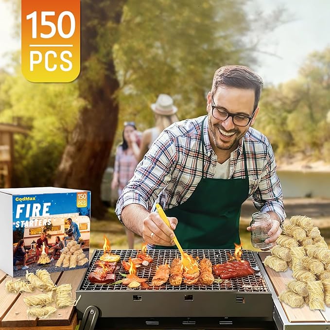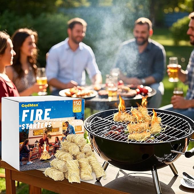 GodMax 150 pcs Fire Starter, Natural Fire Starters for Grill Campfires Charcoal Wood Stove Grill Pizza Oven Indoor Fireplace Outdoor Fire Pit