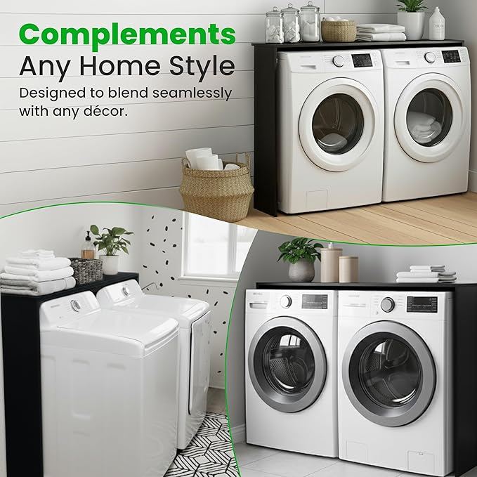 - Transforms Laundry Space: Converts the area above your washer and dryer into a functional storage shelf that keeps laundry essentials organized and accessible