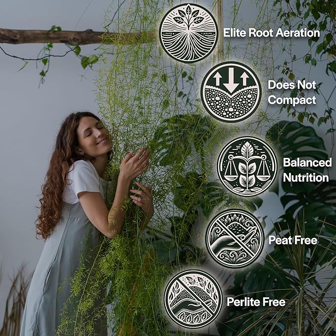 - PEAT-FREE & PERLITE-FREE FOR CLEANER, SUSTAINABLE SOIL: Made without peat or perlite, which means no dusty mess, no floating white chunks, and no collapsing soil structure. Uses renewable, bioactive ingredients that support long-term soil for indoor plants health. A sustainable organic potting soil choice that performs better and lasts longer in containers.
