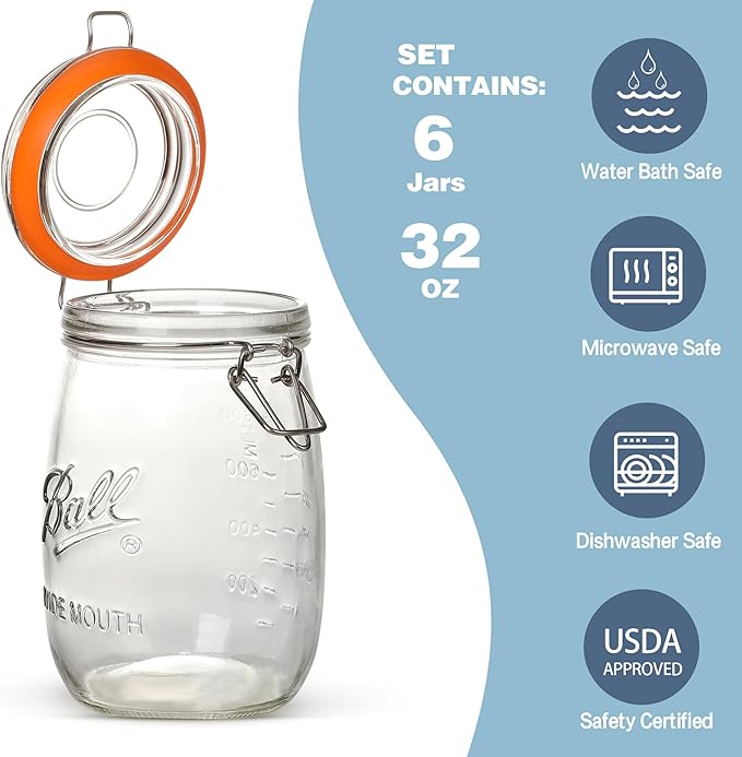 32 oz Wide Mouth Mason Jars with Airtight Lids – Large Glass Canning Jars for Pickling,Flour, Sugar, Pasta, Oats & Cereal Storage