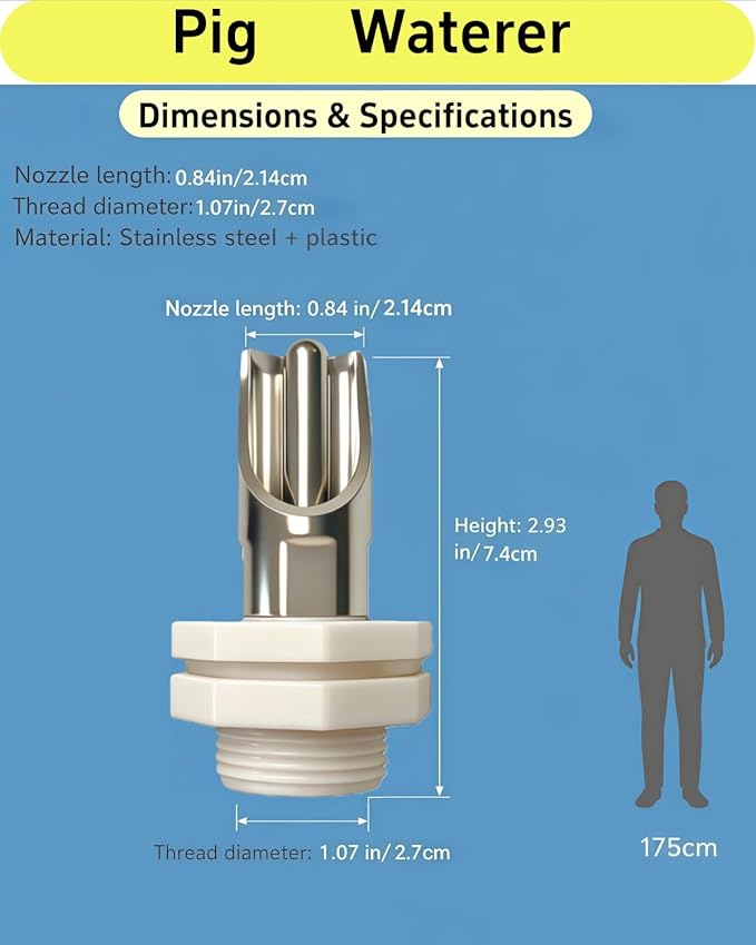 - 【Premium Stainless Steel Construction & Durability】 Engineered with heavy-duty 304 stainless steel, these pig waterer nipples outperform plastic alternatives. The stainless steel pig drinking waterer resists corrosion and withstands aggressive animal use. Users report "well made and should last" and note the superior quality compared to standard pig water trough options. This durable construction addresses common concerns about rust and material failure.