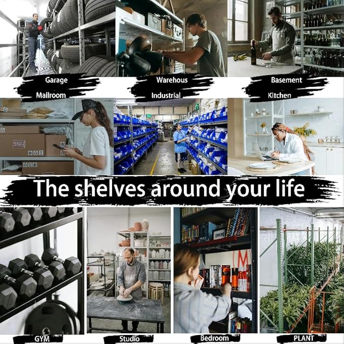- PRACTICAL DESIGN: Easy-to-assemble shelving system features adjustable levels to accommodate items of various sizes and weights.Comes with rubber hammer, protective gloves, instruction manual, and all necessary hardware.Before the product is dispatched,undergoes a rigorous testing process.If you encounter any problems or need additional support, please feel free to contact us. We provide the professional solution within 24 hours,We will be happy to serve you and make sure you have a great shopping experience.
