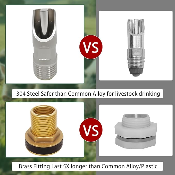 - 【Durable & Rust-Proof】Made of stainless steel and brass connectors, this pig nipple waterer with good corrosion resistance for extended use in livestock environments.