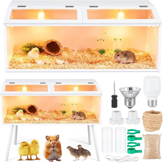 Brooder Box for Chicken Quails Stand Sliding Door, Bulb Set and Feeder, Indoor Chicks Coop Brooder Box Kit, for Ducks, Hamsters, Lizards, Mice, Rat (Table Legs,White,40 x 16 x 16 in)