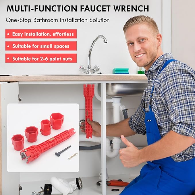 - Easy Installation: Slotted design inside the wrench, uniquely deep into tight corners, easy to operate and friendly to non-professionals. Ergonomic long handle with non-slip grooves on the surface, comfortable and non-slip hand feeling.This multi-functional wrench a necessary gadget for your family toolbox.