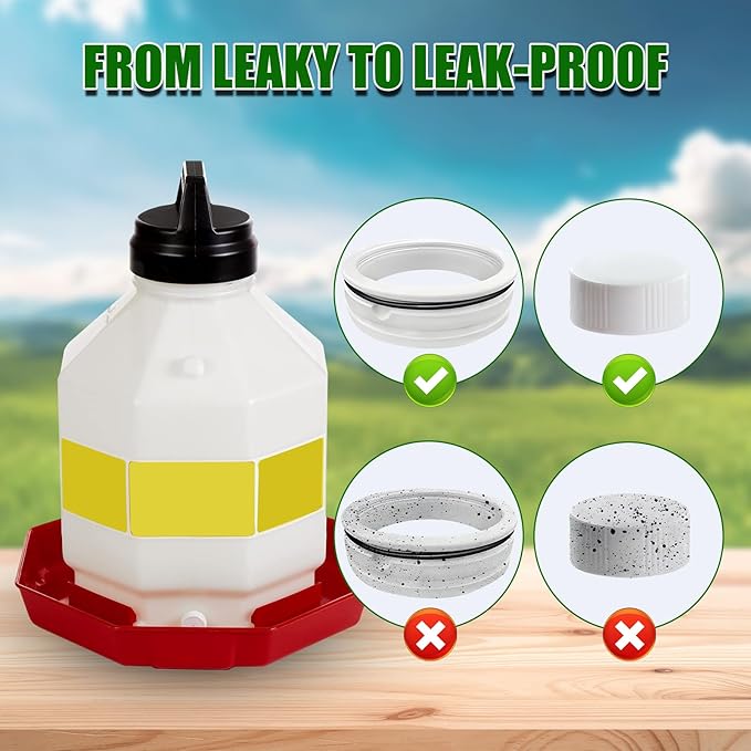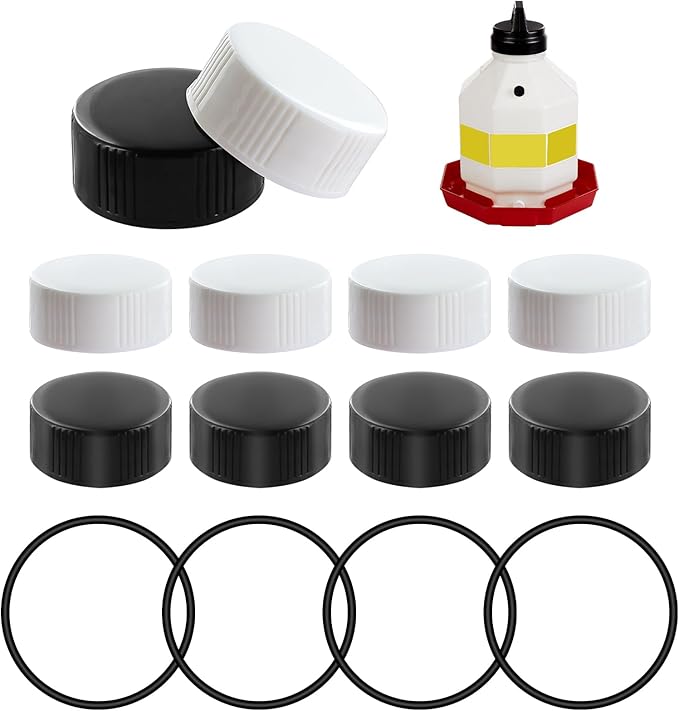Plastic Poultry Waterer Replacement Parts Kit - 10 Caps & 4 O-Rings, Compatible with Miller, Little Giant PPF & Farm-Tuff 3/5/7 Gallon Poultry Founts (Black & White)
