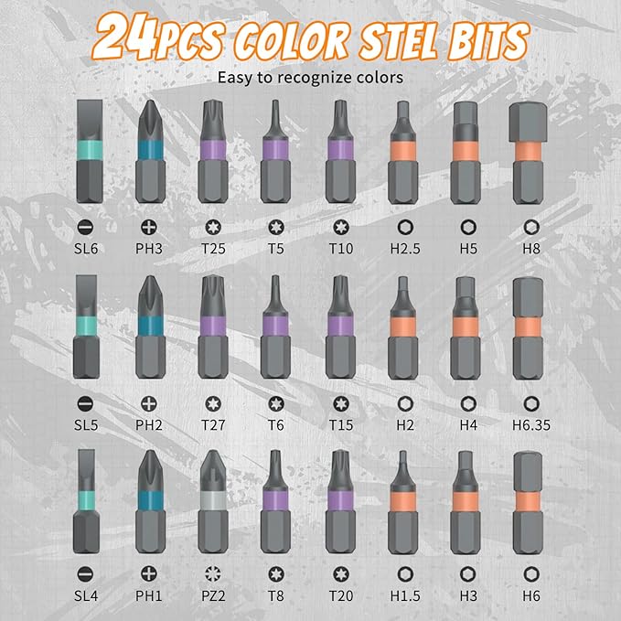 - ✅2026 Upgraded Magnetic Ratchet Screwdriver Set: Designed for DIY ers, professionals, and home repairs, this kit includes 24 magnetic precision bits that fit Slotted,Phillips,Torx,Hex,and Pozidriv screws.Ideal for electronics, watches,furniture,and appliances.