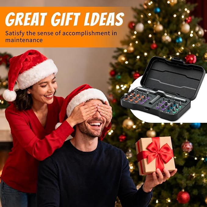 - ✅The Ideal Present for DIY Lovers: 24 in one ratchet screwdriver set presented in a stylish, space-saving case (6.2 × 3.5 × 1.3 inches), this kit is engineered for effortless carrying and tidy storage. or bicycles,It's highly functional and prepared for every task, this versatile screwdriver set is an ideal present not only it is an exceptional present for DIY enthusiasts, handymen, and professionals, but also a great gift for Christmas, birthdays, Father's Day or any special occasion!