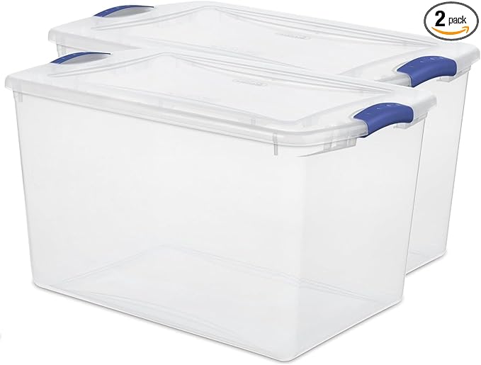 2 Pack 66 Quart Clear Plastic Storage Bins with Blue Latch Lids – Containers for Home, Closet & Garage Organization, Ideal for Bulky Item Storage