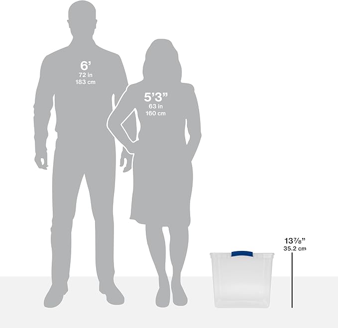 - Clear Base & Lid for Easy Content Identification – Help you avoid frequent rummaging through boxes to find what you need. The clear base and lidlet you see inside from many angles, so you can quickly locate clothing, blankets, or other bulky household items at a glance. It features a Stadium Blue accent for a fresh look.