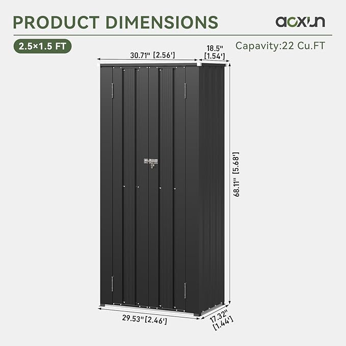 Aoxun 2.5’x1.5’ Outdoor Storage Cabinet, Outdoor Metal Storage Shed with 2 Adjustable Shelves & Lockable Doors, Vertical Tool Shed for Patio Garden, Garage, Porch, Black