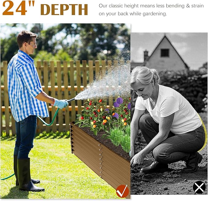- Easy Harvest Raised Beds: The 2ft height of these easy harvest raised beds minimizes bending. This ergonomic design reduces back strain, making gardening more comfortable and enjoyable for everyone.