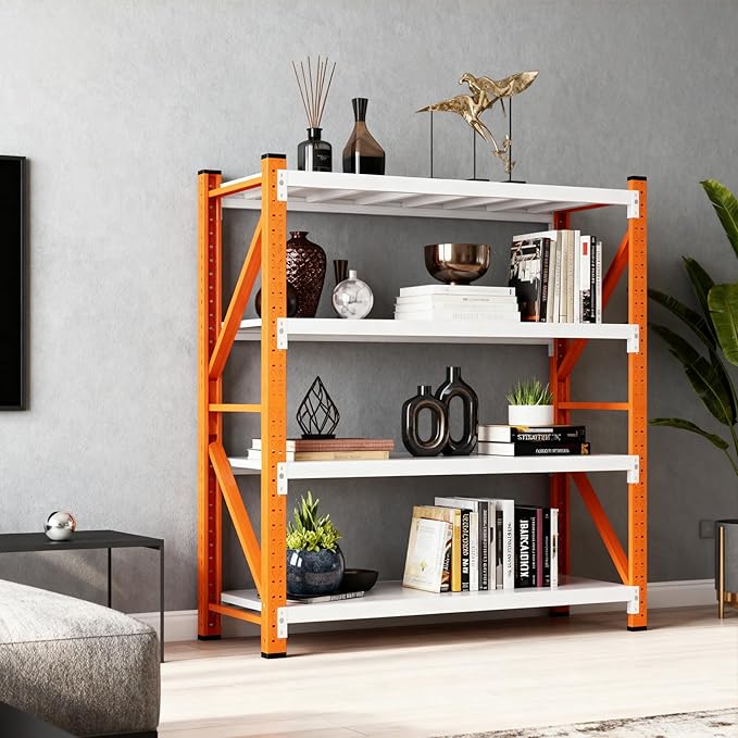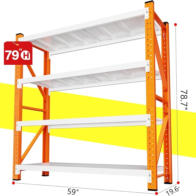79" H Garage Shelving,3500LBS Heavy Duty Storage Rack,4 Tiers Metal Storage Rack Shelf, Adjustable Shelving Unit for Garage,Kitchen,Warehouse,Basement,78.7" H x 59" W x 19.6" D,Orange&White