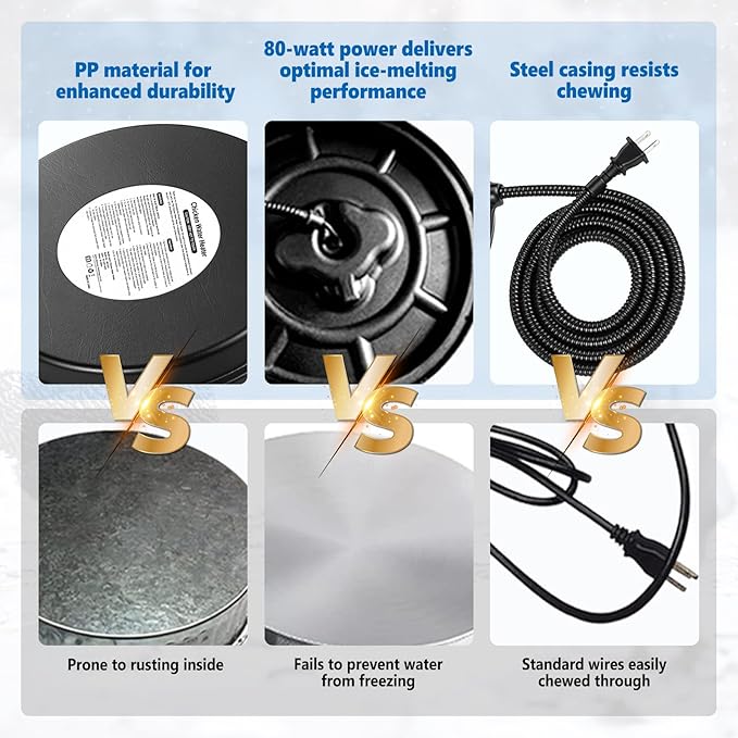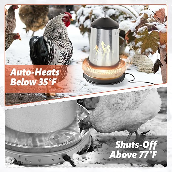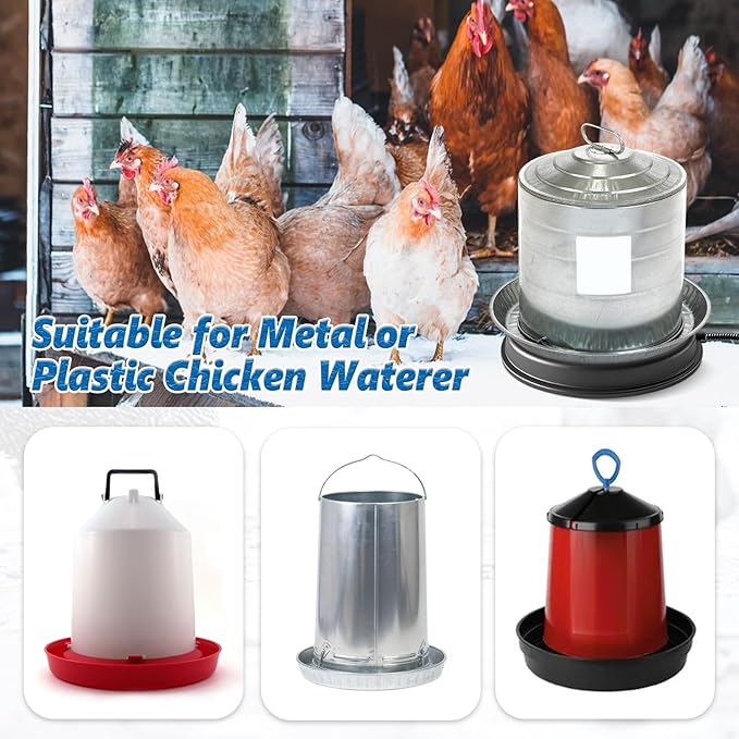 - Durable & Versatile for Any Coop Setup – 12.6-inch diameter fits most plastic or metal poultry waterers up to 5 gallons. Includes a 6-foot outdoor-rated power cord for flexible placement in pens, runs, or barns.
