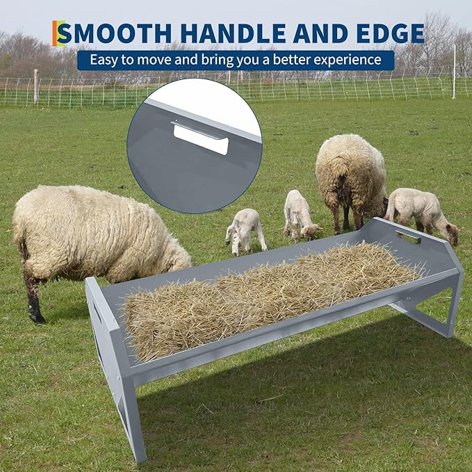 - 【Updated Feeding Trough】--The sheep feeding trough features smooth edge and handles for easy movement without the risk of hand injuries. The V-shaped bottom enhance stability, preventing livestock from pushing or tipping over during feeding.