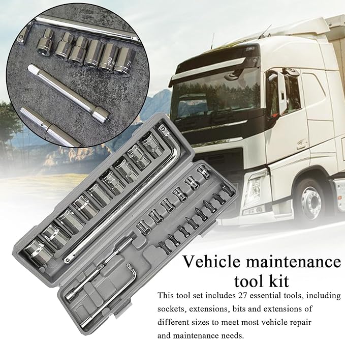 - Versatile Repair Solution: With its 27-piece configuration, this socket set serves as a repair-ready toolkit, delivering universal vehicle compatibility while integrating sockets and extension bars to enhance accessibility in tight spaces, perfect for DIY projects or professional settings