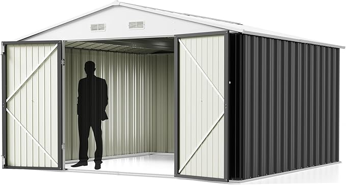 Greesum 10x10FT Outdoor Storage Shed, Utility Tool Shed Metal Storage Shed with Door & Lock for Patio Storage, Garden, Lawn, Gray