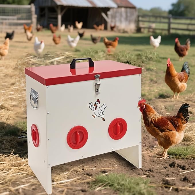 - đŠăHeavy-Duty Metal BuildăMade from rust-resistant, powder-coated steel that withstands rain, sun, and harsh outdoor conditions. Stronger and more durable than plastic feedersâno cracking, rotting, or corroding. Ideal as a poultry feeder for long-term outdoor use.