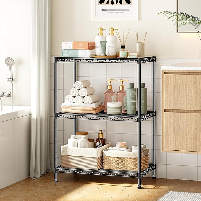 35.4''H Shelf 3 Tier Storage Shelves Metal Shelving,Adjustable Small Wire Shelving Unit,Utility Steel Shelving Organizer Storage Rack for Kitchen Bedroom Laundry Pantry Office,17.7''Wx11.8''D,Black
