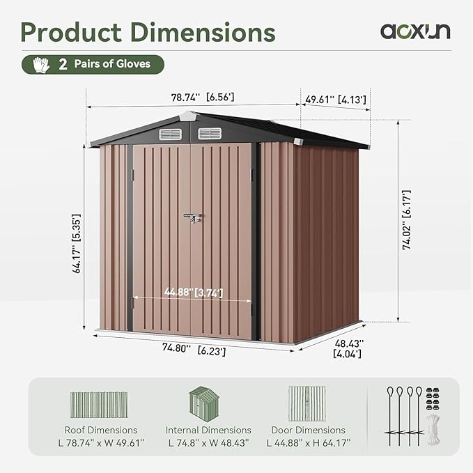 Aoxun 6.2x4 FT Shed with Anchors and Wind-Resistant Ropes Outdoor Storage Shed with Lockable Doors & Slooping Roof Metal Garden Tool Shed for Backyard, Patio, Poolside (Brown)